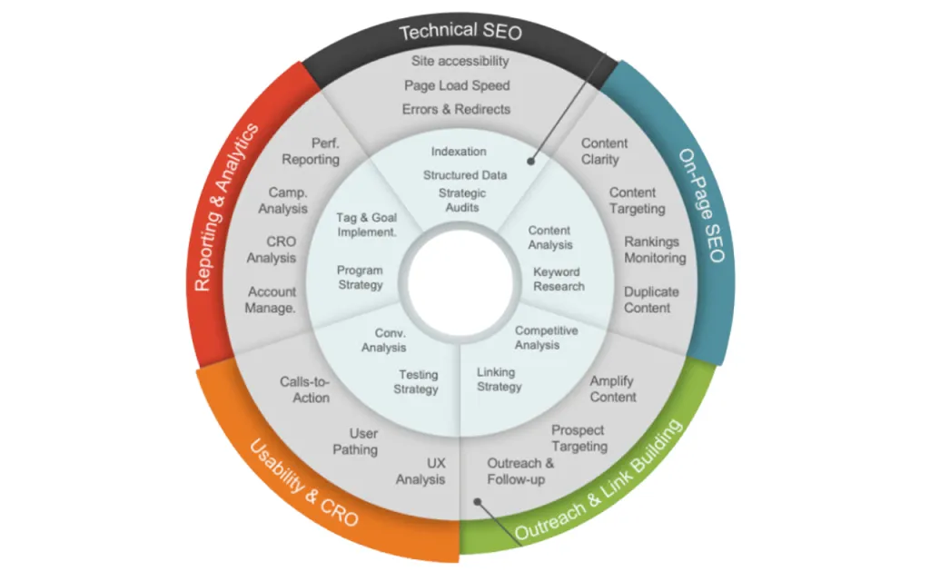 Our approach combines technical SEO, on-page optimization, content strategy, and off-page link building to increase visibility and rankings.