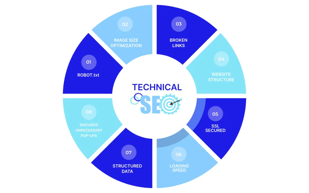 Search engines must understand your website before they can rank it. Crawl errors and indexing issues, robots file optimize, sitemap implementing, speed optimization, structured data implementation, site architecture and internal linking.
